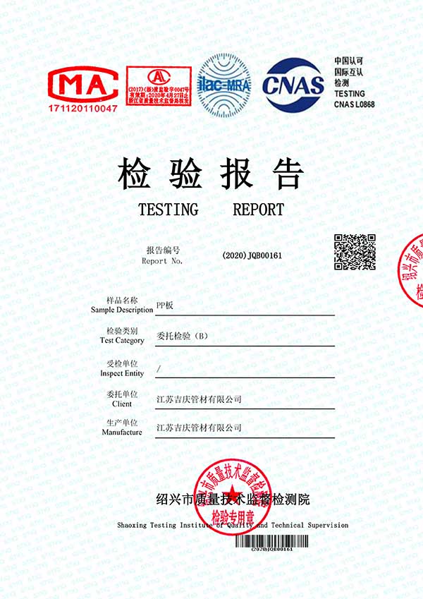 江蘇吉慶管材集團有限公司創(chuàng)辦于2010年2月,是pp管,pp管材,pp管件,pp風管,frpp管,frpp管材,pph管,pph管材,pph管件,pph風管,pvdf管,pvdf管材,pp儲罐,pp板材的專業(yè)化生產(chǎn)企業(yè)。公司占地30余畝,擁有各類資產(chǎn)8000余萬元,專業(yè)技術(shù)人員20余人,管材生產(chǎn)線10條,管件生產(chǎn)線11條,具備了10000余噸各類防腐塑料制品的年生產(chǎn)能力。公司通過了ISO9001-2000質(zhì)量體系認證,同時被評為AAA信用單位,2018年公司被評為高新技術(shù)企業(yè),此后陸續(xù)取得安全生產(chǎn)管理證書等榮譽。公司位于水上花園城市----江蘇省揚中市八橋鎮(zhèn)永福路18號,交通便捷,可直接導航至公司園區(qū)內(nèi)。公司全體員工將以高度的敬業(yè)精神,嚴格的質(zhì)量控制理念和科學的管理方法,及時周到的服務(wù),竭力為我國塑料管道在各領(lǐng)域的推廣和應(yīng)用作出更大的貢獻!